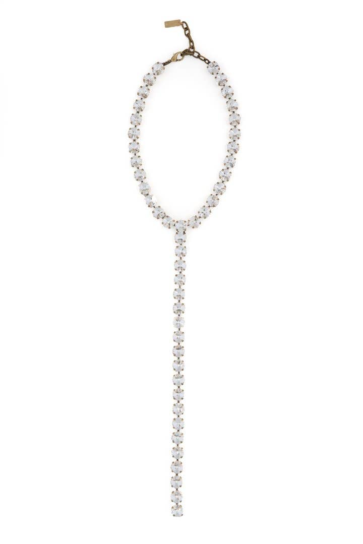 Add some glam to your look with this gorgeous L.A. Necklace! With its stunning crystal accents, it's perfect for a dazzling night out. Crafted in Canada with brass base metal and various plating options, it is sure to be a statement piece in your collection. At 15" with a 5" drop, you'll be turning heads all night long!
