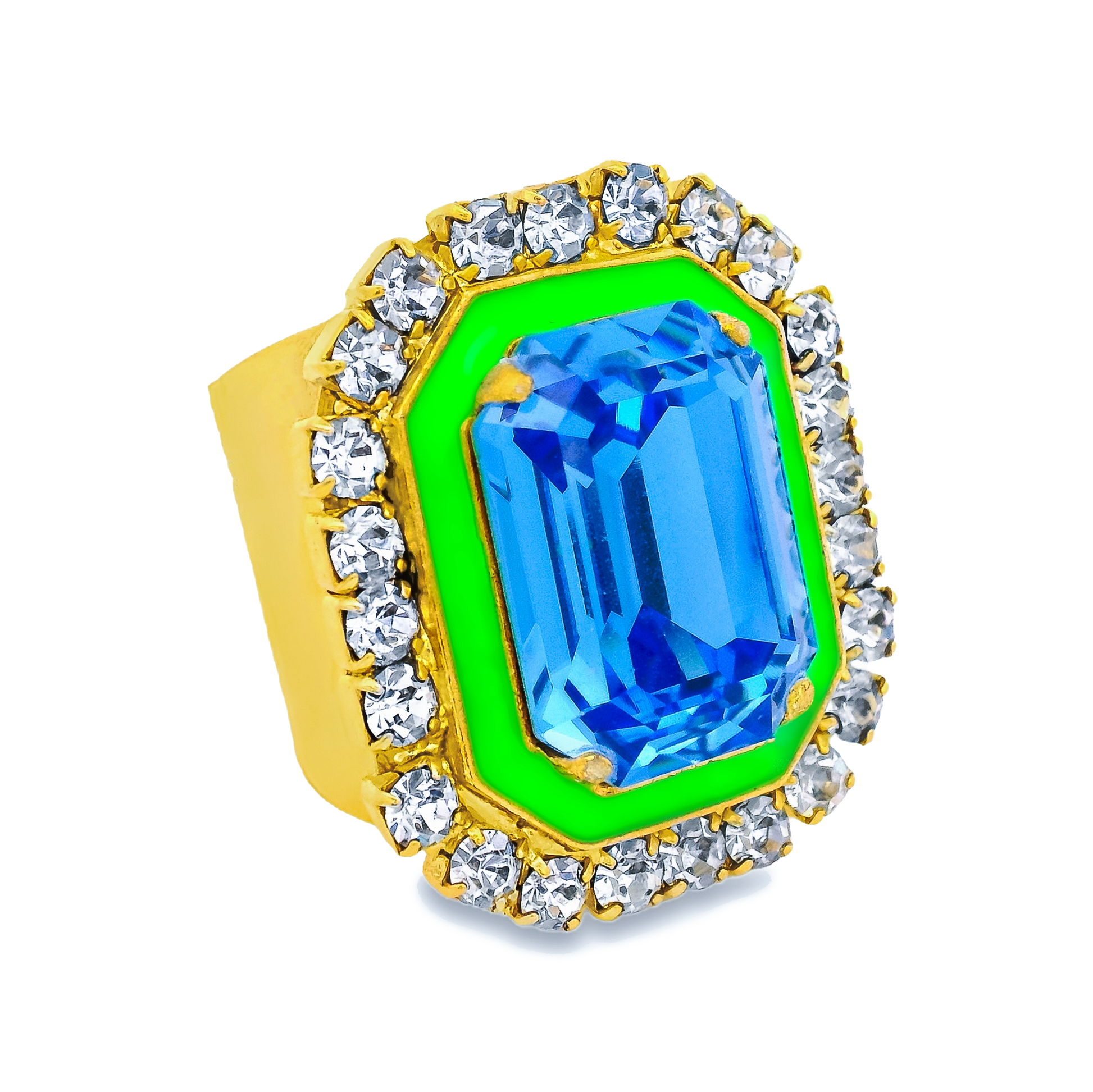 Upgrade your jewelry game with the Marsh Ring. With its antique gold plating, high quality crystals, and hand painted enamel, this beautiful ring is sure to turn heads. Made in Canada with a malleable brass base metal, it's the perfect combination of style and quality.