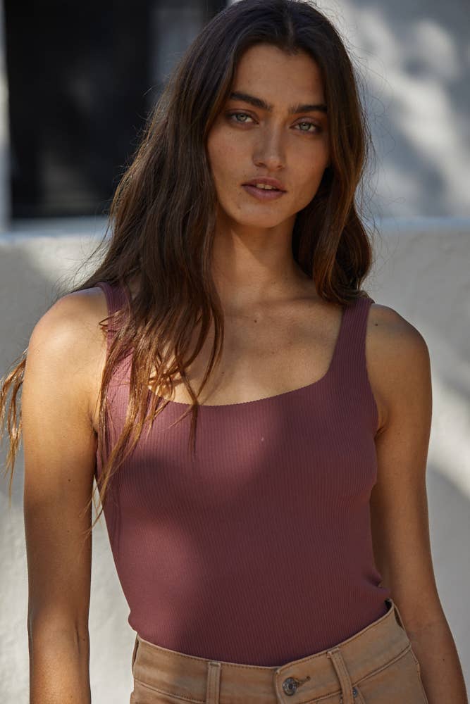 Seamless Ribbed Double Layered Square Neckline Bodysuit With Bottom Snap Closure